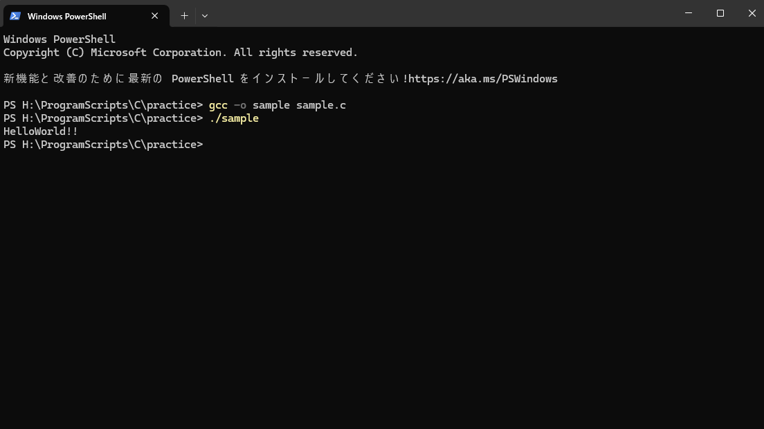 私は、HドライブのProgramScriptsというフォルダ内のCというフォルダ内のpracticeというフォルダにプログラムを書くことにしました